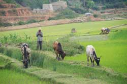 Le matin nous prenons la route pour Fianarantsoa et Ambalavao. Ce trajet, agrémenté de plusieurs arrêts, nous offre les paysages remarquables des plateaux avec leurs Rizières en terrasses et Fours à brique ; des lieux de cultes funéraires, un site de Dômes granitiques anciens et la présence de Maki catta de la réserve villageoise d’Anja.